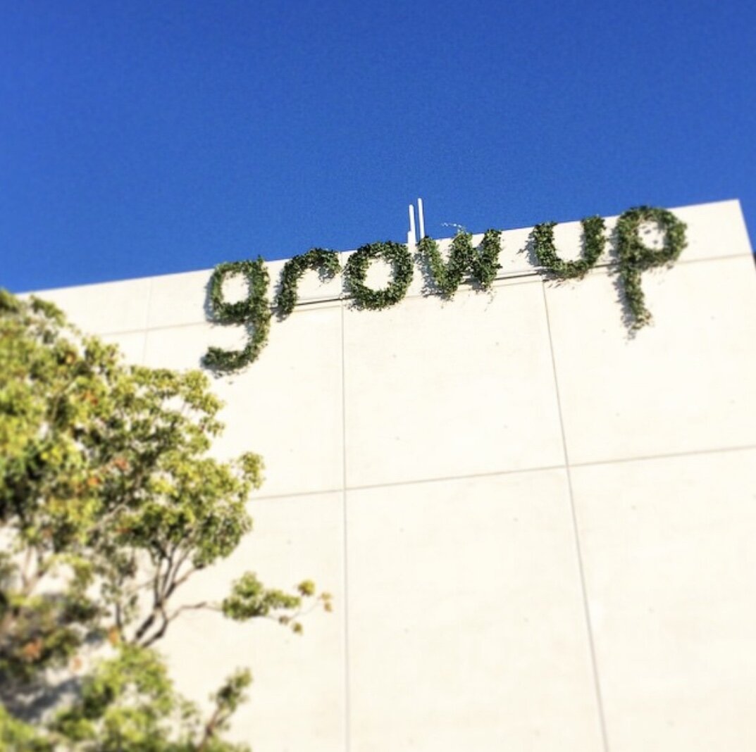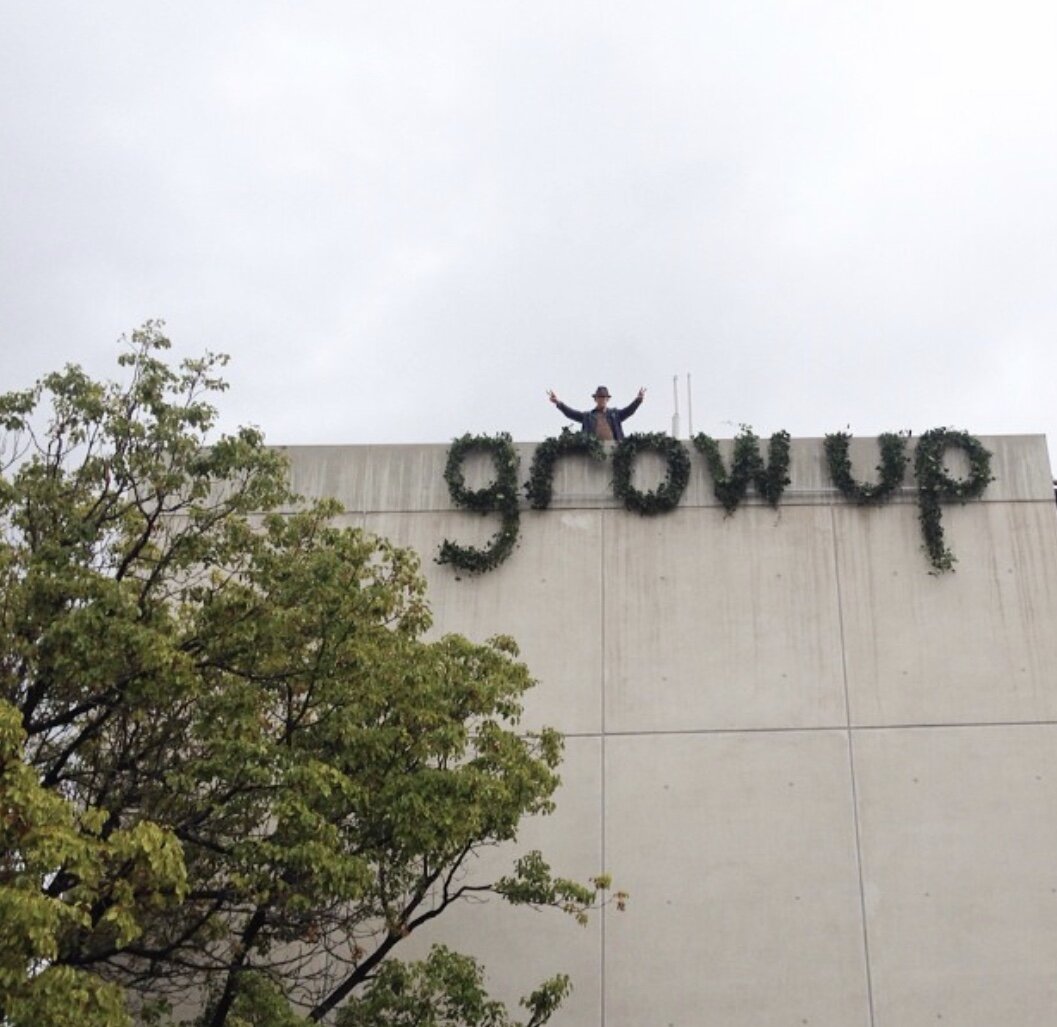 Playfully ironic and intentionally provocative, the words “grow up” spill over from the rooftop and cascade down the side of MARS Gallery, Windsor. Constructed by weaving invasive vine weed species removed from Victorian bushland, the act of producing this artwork was a form of ecological repair. Hanging Garden appears in the spirit of ephemeral protest. Located on a wall in urban space, like much graffiti, a message delivered in unorthodox materials challenges us to reflect on its possible meanings.